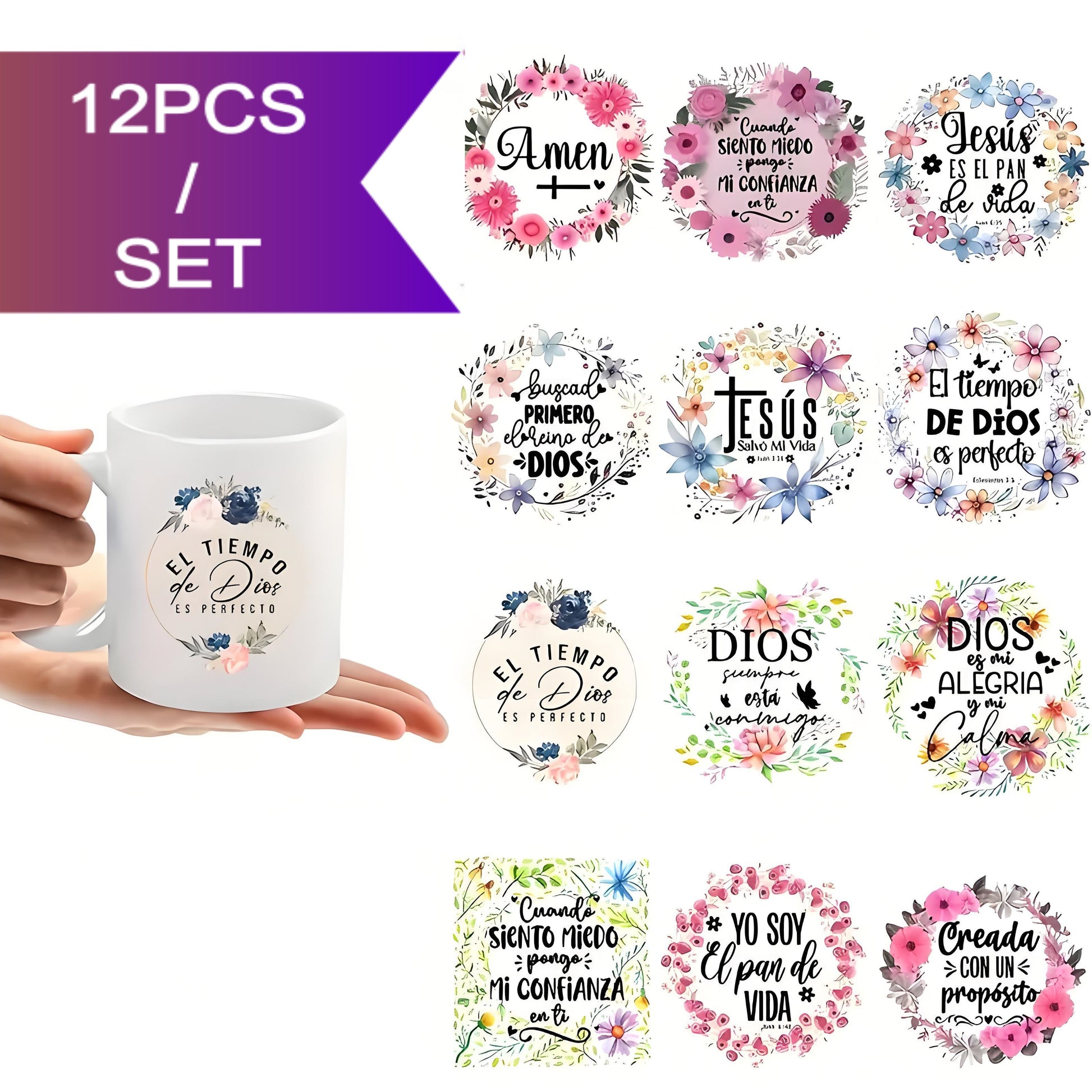 (12PCS/SET)Wreath text coffee cup UV DTF