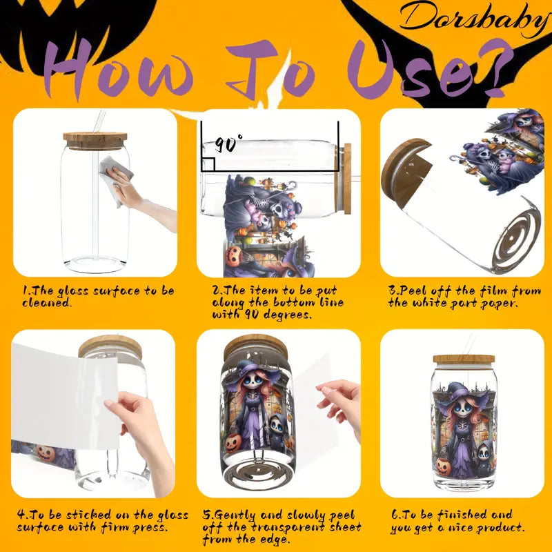 (4PCS/SET)Halloween Skull UV DTF Transfer Sticker Glass