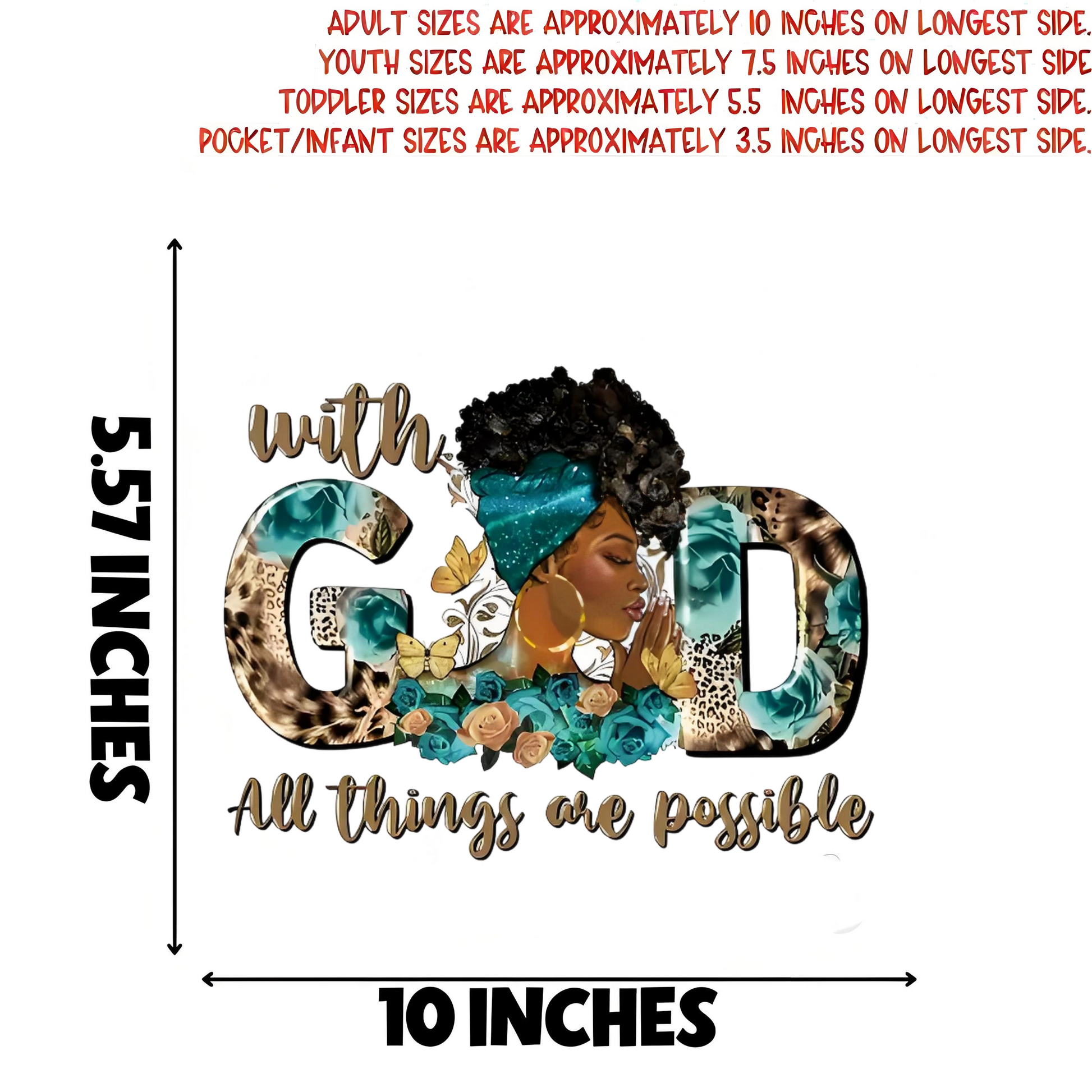 Sizes: Adult 10” longest side, Youth 7.5”, Toddler 5.5”, Pocket/Infant 3.5”. Transfer only—shirt not included.