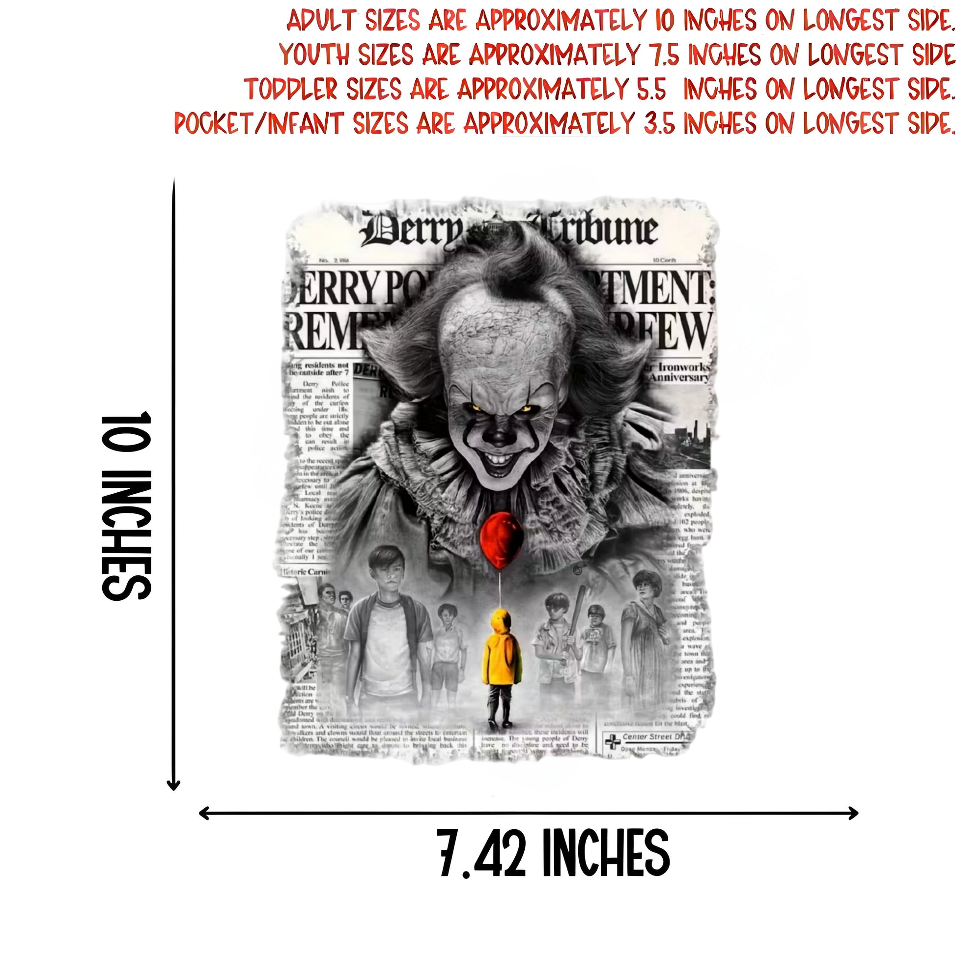 Sizes: Adult 10” longest side, Youth 7.5”, Toddler 5.5”, Pocket/Infant 3.5”. Transfer only—shirt not included.