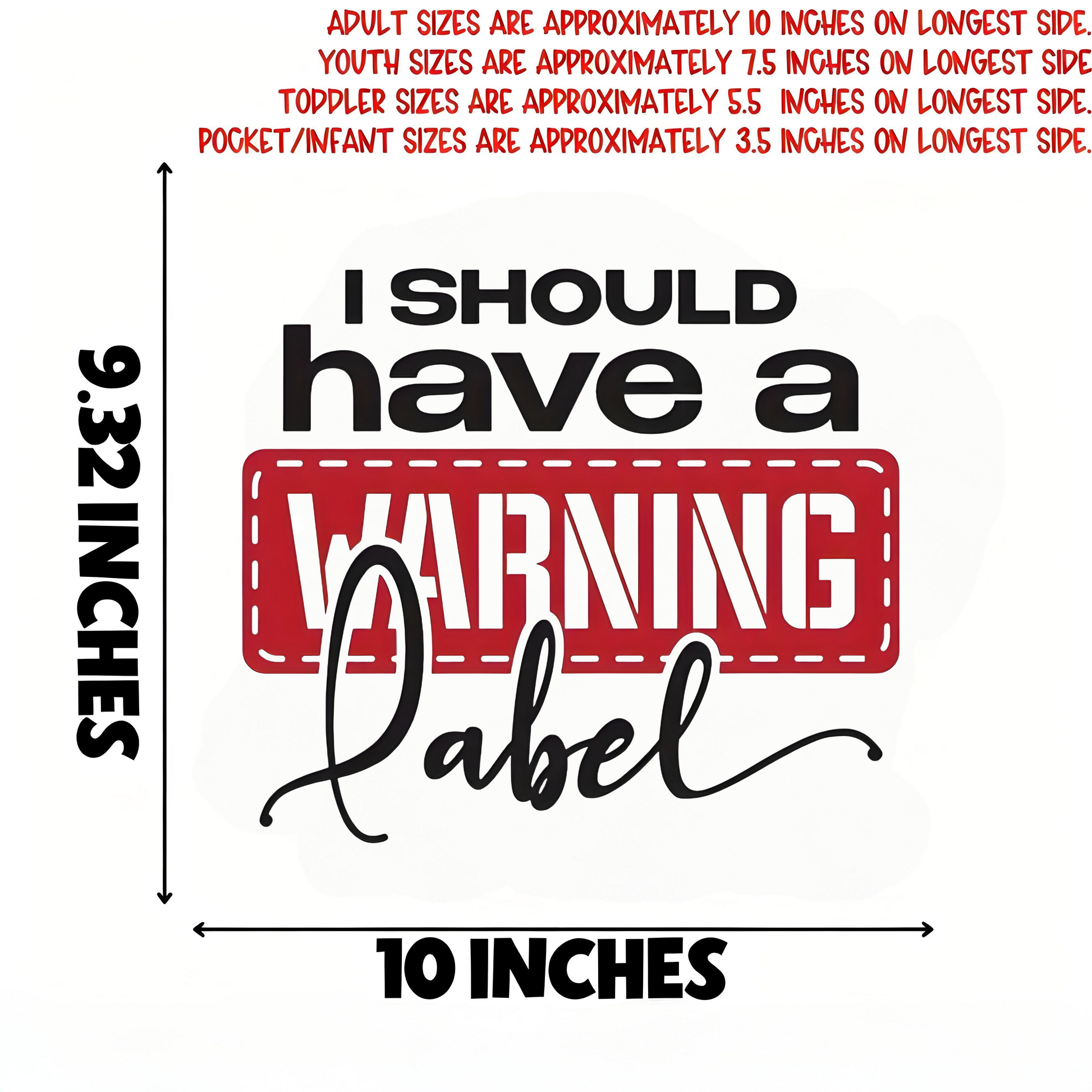 "I Should Have a Warning Label" Quote Iron-On Transfer