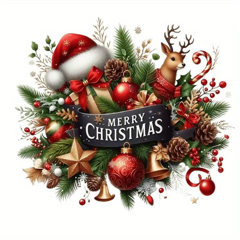 Santa Claus, Reindeer, Pine Cone, and Bell Design Iron-On Transfers
