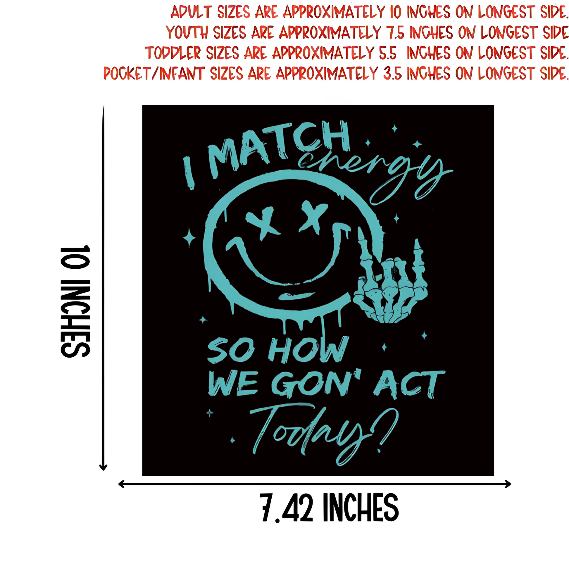 Sizes: Adult 10” longest side, Youth 7.5”, Toddler 5.5”, Pocket/Infant 3.5”. Transfer only—shirt not included.