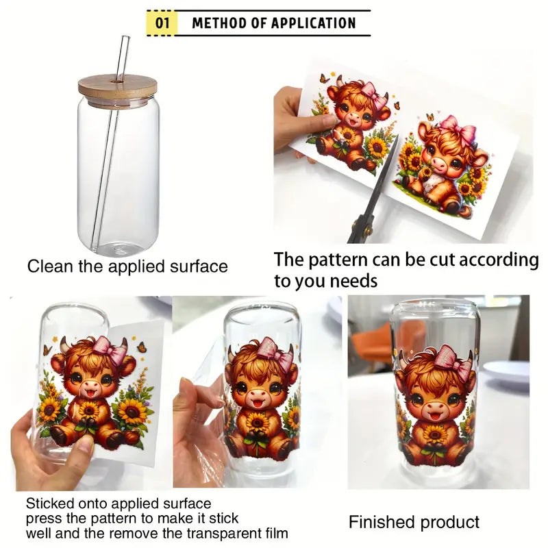 Waterslide Transfers: Applies with water, no heat needed. Laser printed - no need to seal before applying. Once applied, sealer may be added (optional). Permanent once completely dry - hand wash only. Don't allow item to soak in water after complete. Clear/transparent backing - for non-porous surfaces such as glass, candles, tumblers, wood, plastic, etc. Some examples of use: Glass cans, metal tumblers, wood furniture, toys, tumblers, cell phone cases, guitars, helmets, decorative ceramic wear, etc. White shown in an image will be transparent - printers cannot print white.